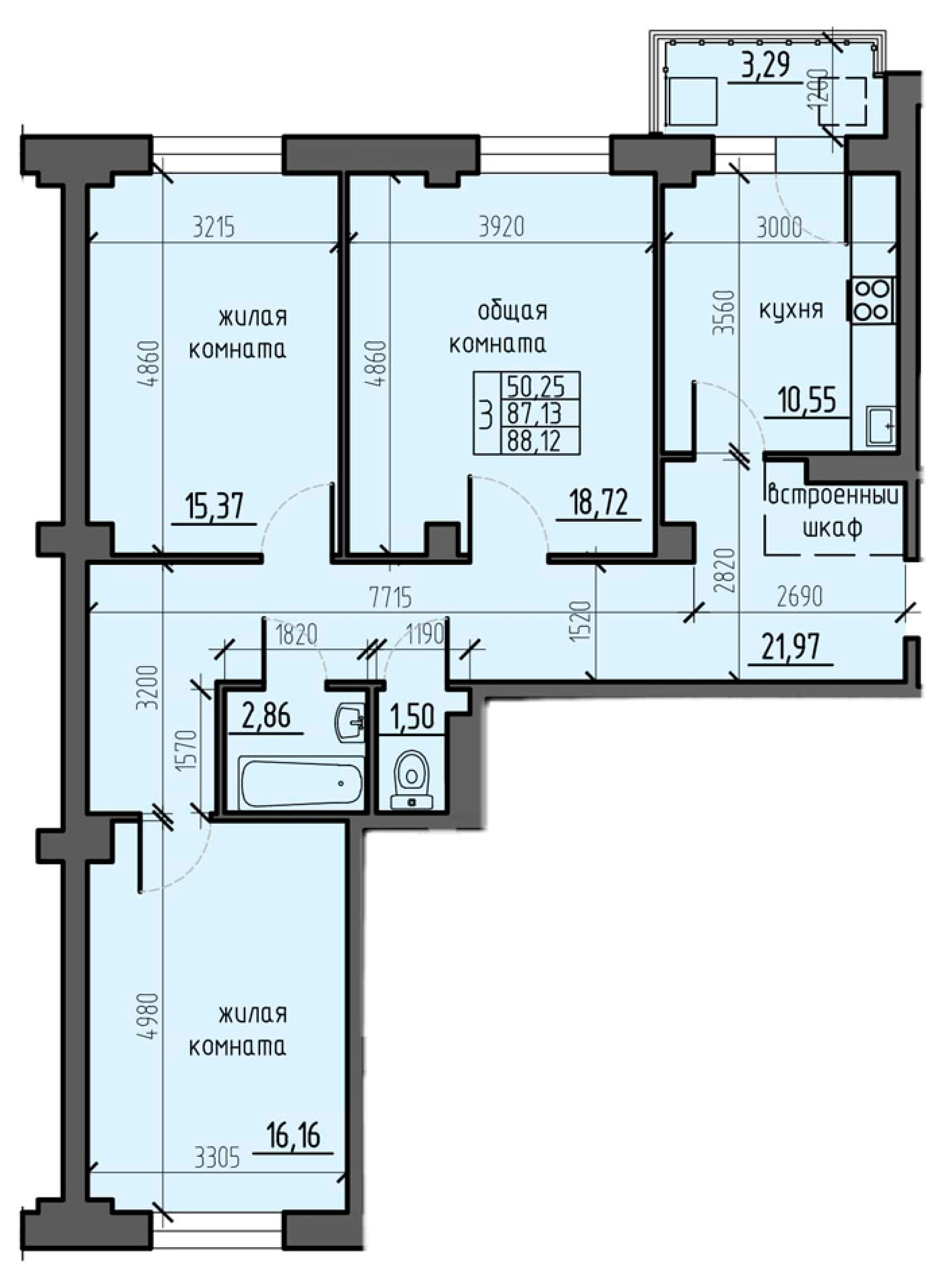 Площадь: 88,1 кв.м.