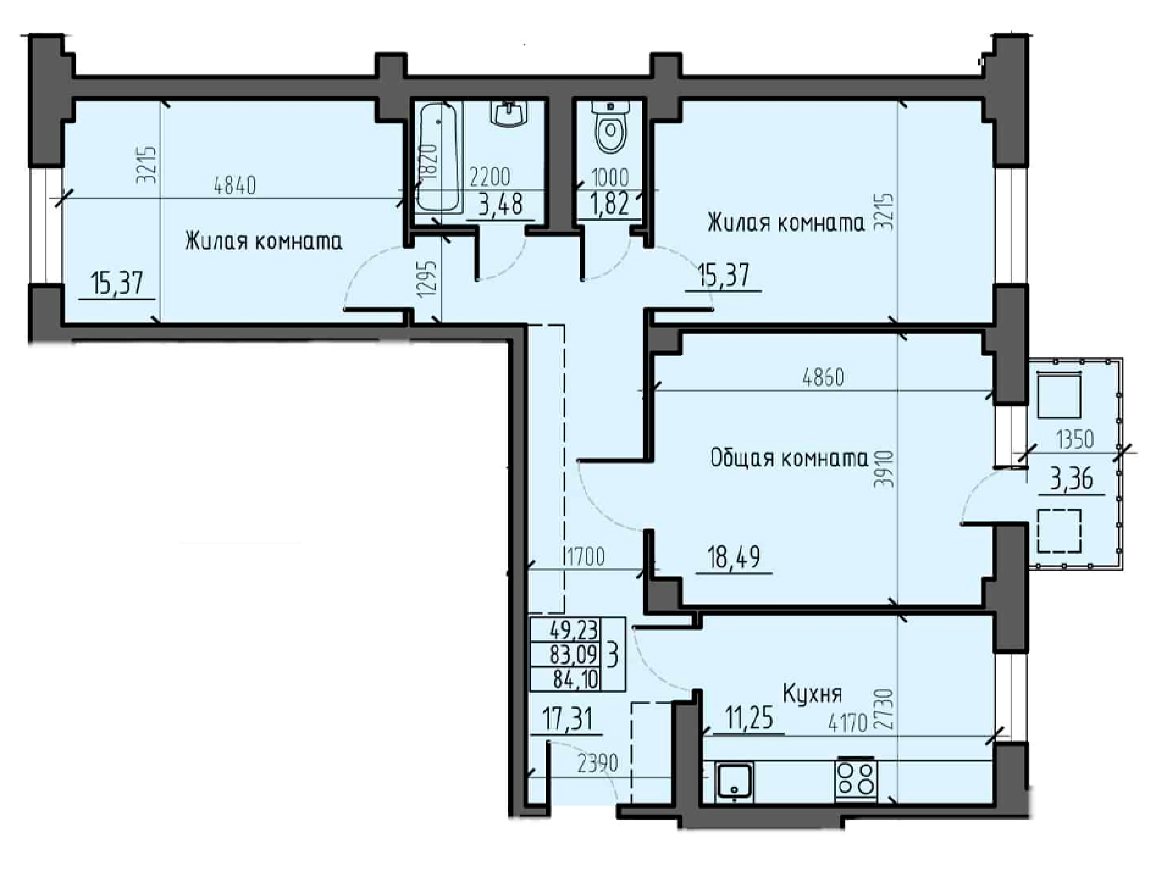Площадь: 84,1 кв.м.