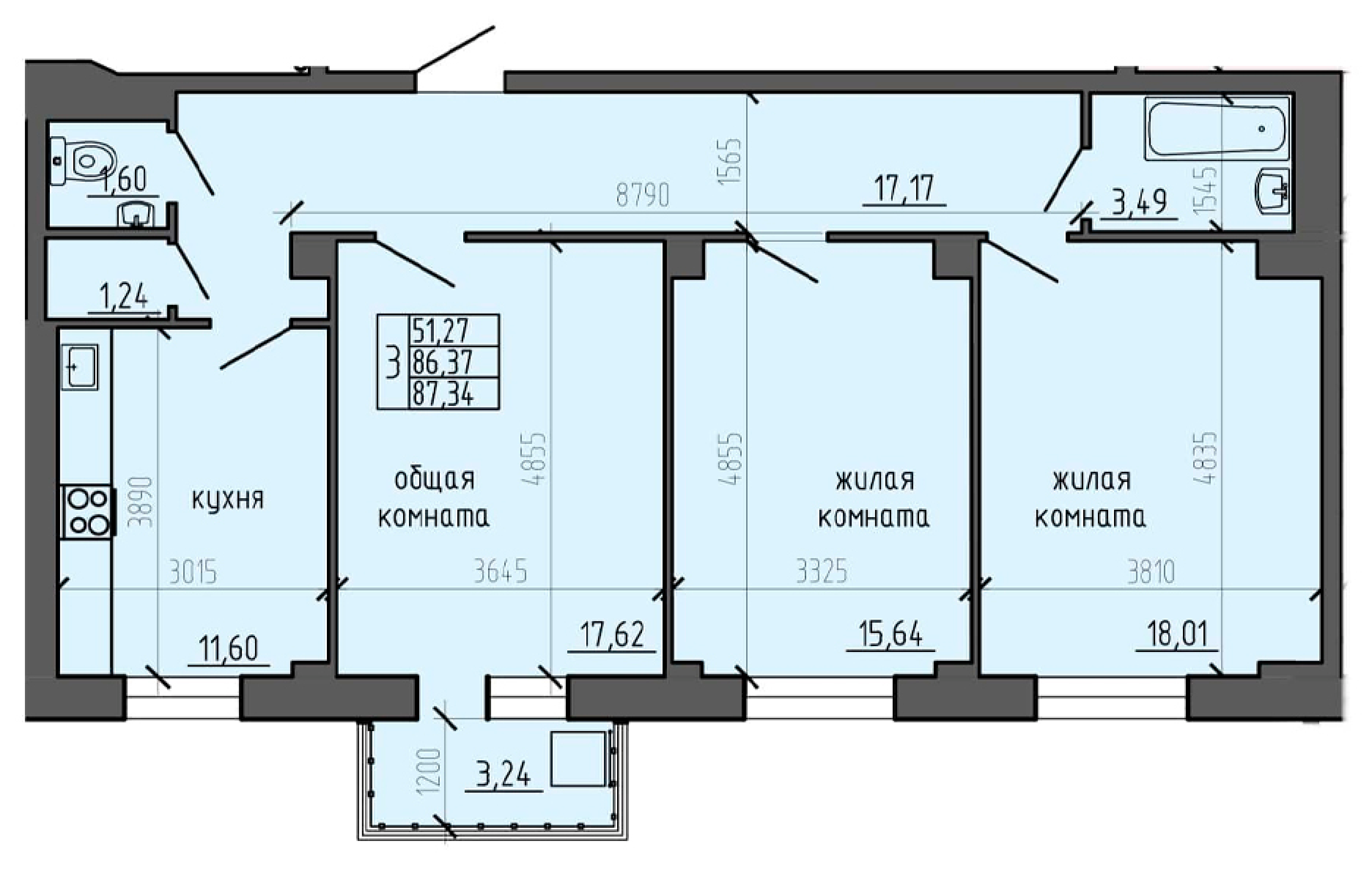 3-комнатная