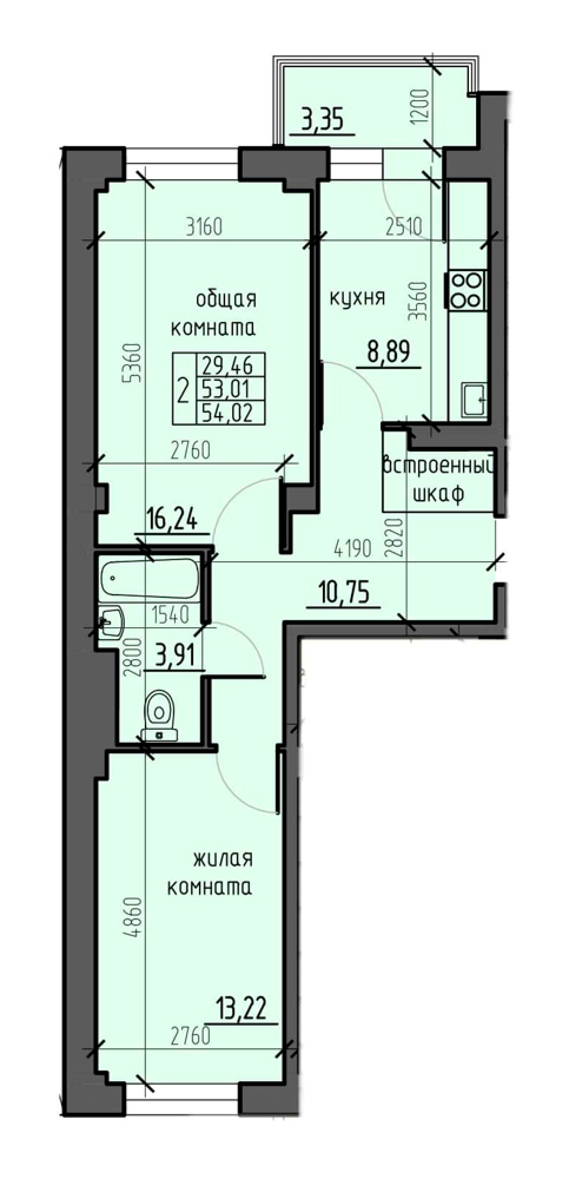 Площадь: 54 кв.м.