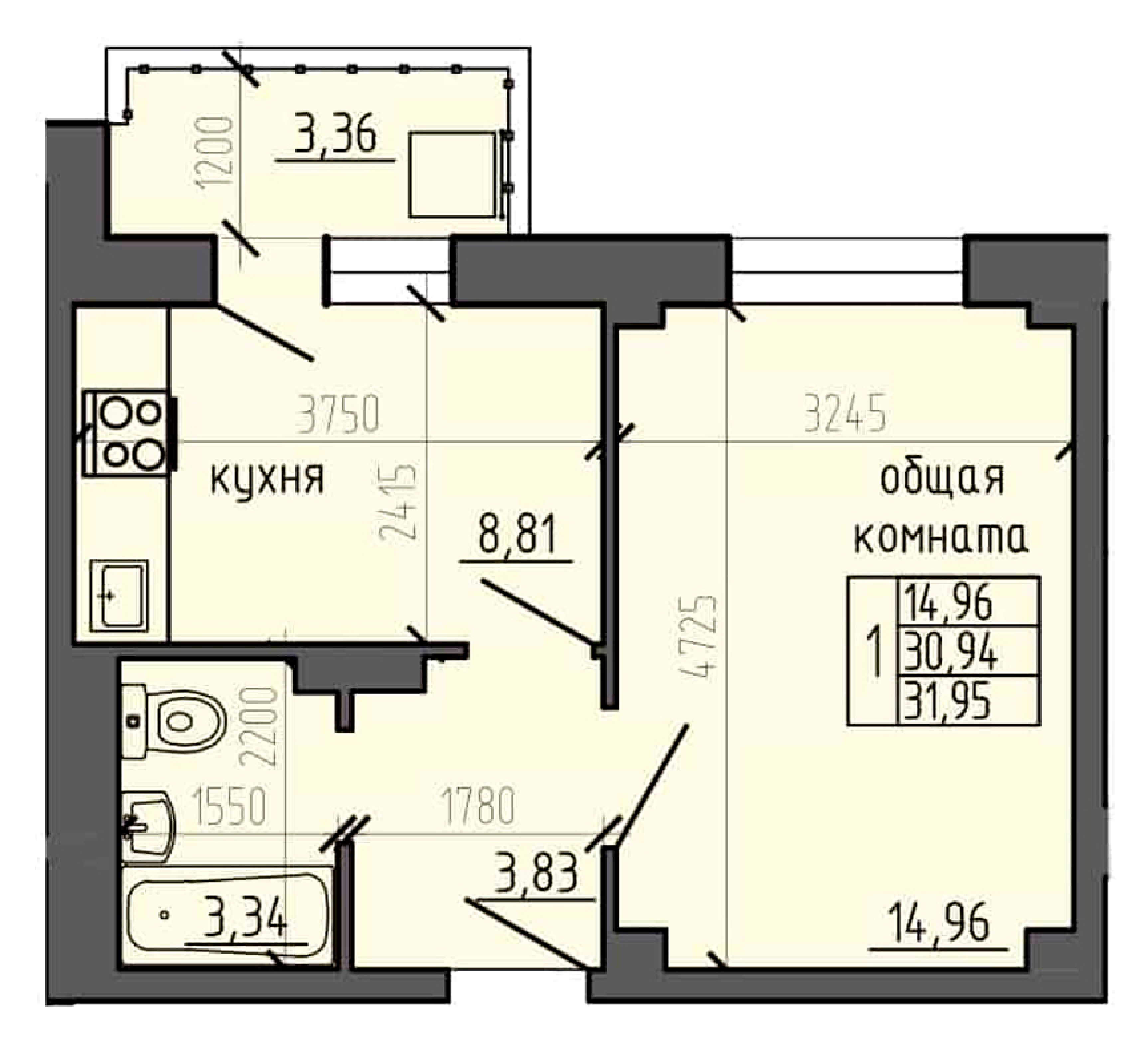 Площадь: 31,95 кв.м.