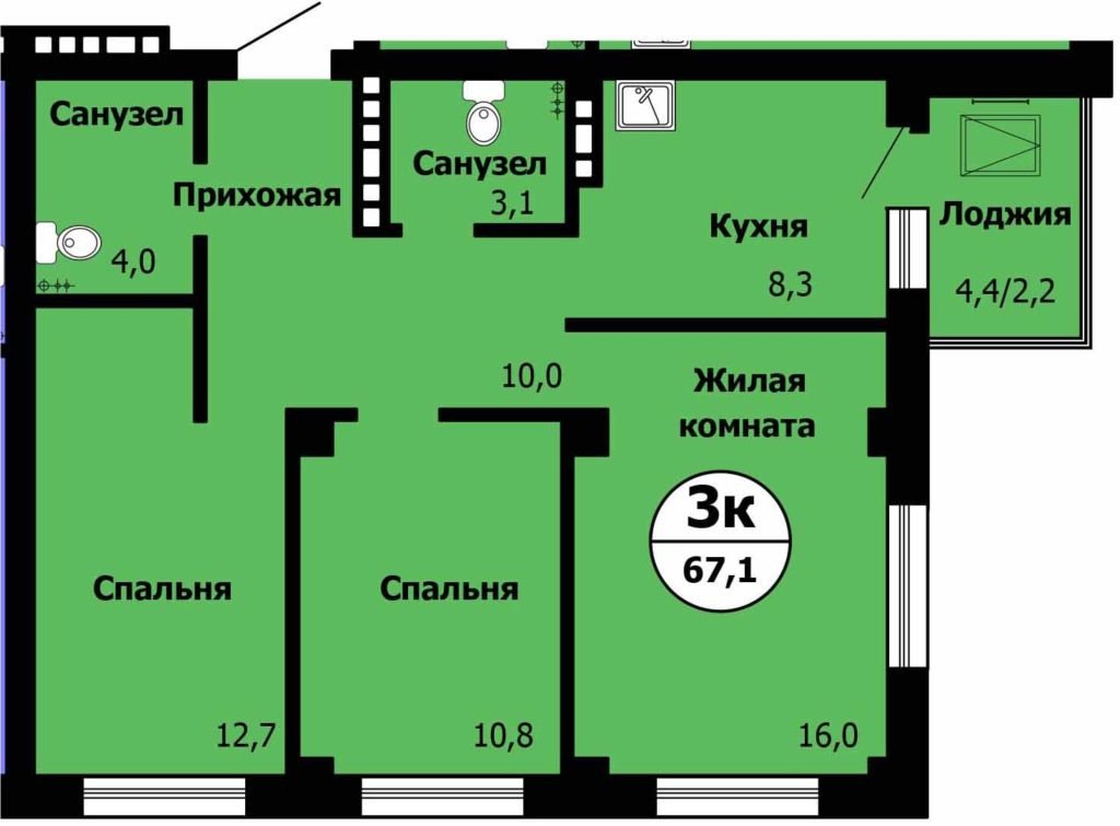 3-комнатная