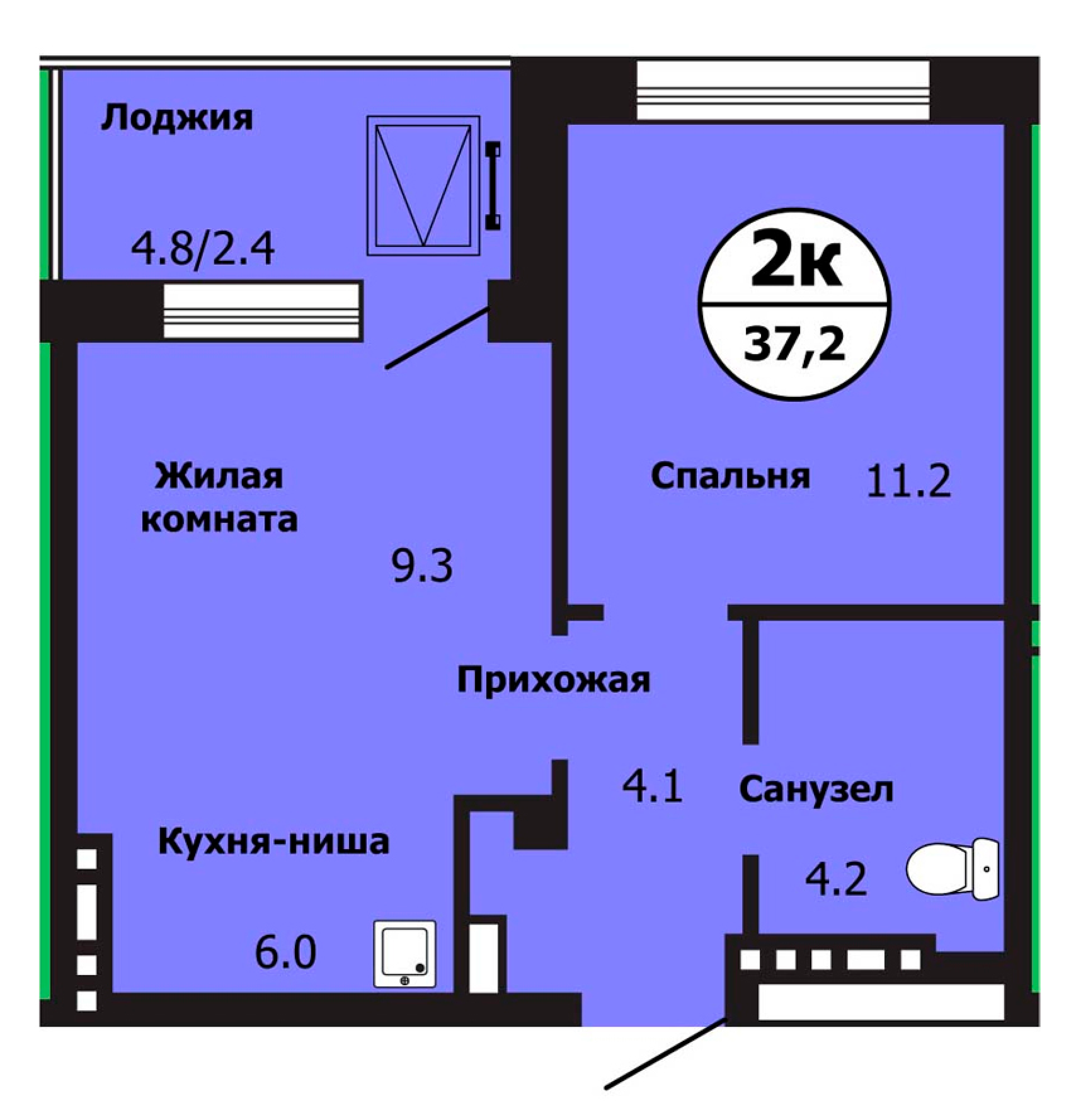 Площадь: 37,2 кв.м.