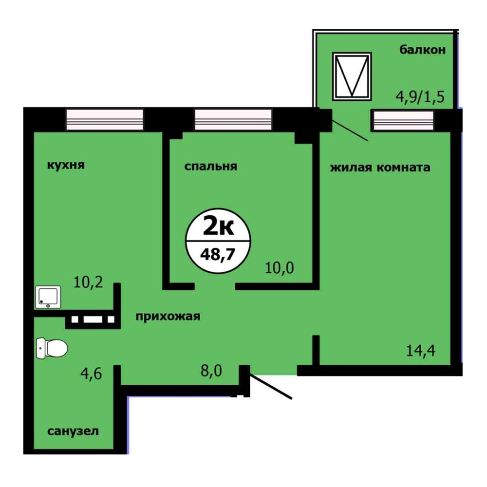 Площадь: 48,7 кв.м.